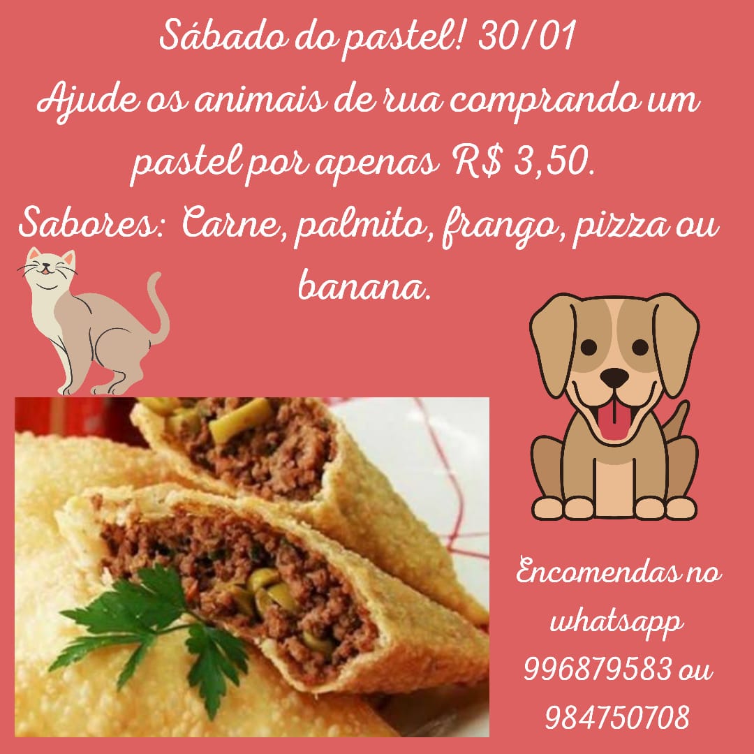 O Grupo Amor Vira Lata – que realiza ações voluntárias em prol dos animais de rua – fará vendas de pastéis neste sábado (30).