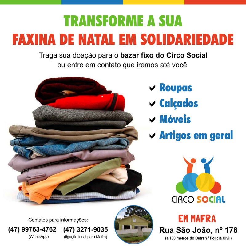 A primeira etapa da campanha consiste na arrecadação de brinquedos novos ou usados e também de doces, que podem ser entregues na sede do Circo Social situada na Rua São João, nº 178, Centro I (a 100 metros do Detran e Delegacia Regional de Mafra), ou na Agroveterinária São João, também em Mafra.