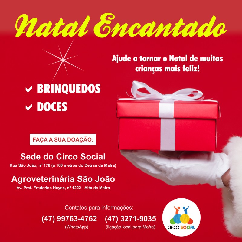 Iniciou na quarta-feira (18) a campanha Natal Encantado do Circo Social, que tem a estimativa de atender cerca de 3.000 crianças carentes de Riomafra.