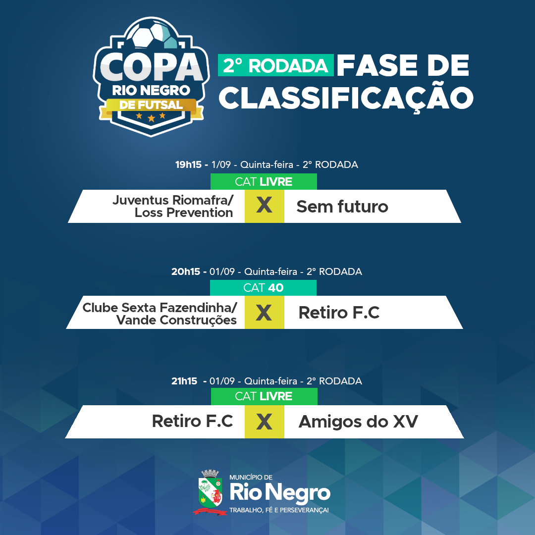 A bola continua rolando em Rio Negro. A fase de classificação da Copa Cidade Rio Negro de Futsal iniciou nesta terça-feira. Os jogos estão sendo realizados no Ginásio de Esportes José Müller. A competição será disputada em quatro categorias: Feminino Livre, Masculino Livre, Masculino Quarentinha e Masculino Sessentinha.