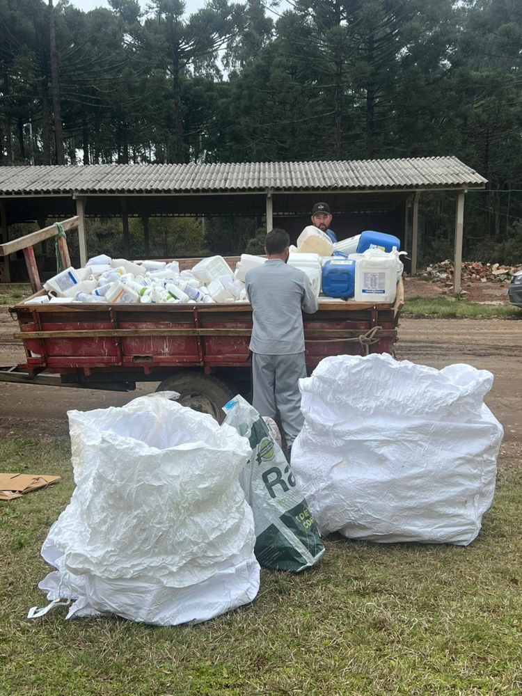 Nesta segunda-feira teve inÃcio em Rio Negro a coleta de embalagens de agroquÃmicos dos produtores rurais.