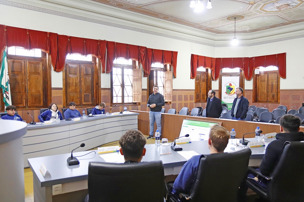 Na manhã desta terça-feira, 2 de julho de 2025, a Câmara Municipal de Rio Negro sediou a 1ª Sessão Ordinária do Parlamento Jovem, programa promovido pelo Tribunal Regional Eleitoral do Paraná (TRE-PR) em parceria com a Secretaria de Estado da Educação e executado localmente pela própria Câmara, que disponibiliza estrutura, equipe e suporte legislativo completo aos jovens participantes.