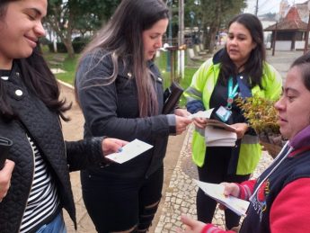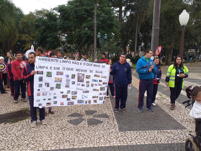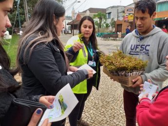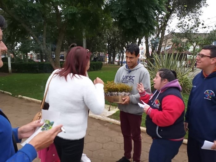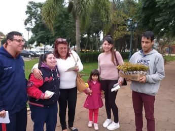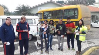 Nesta terça-feira, dia 11/06, a Escola de Educação Especial Tia Apolônia, de Rio Negro/PR, realizou uma blitz educativa na praça central da cidade. Mais de 90 alunos divididos em dois turnos, distribuíram mudas de jabuticaba, cereja e pitanga, e ainda entregaram folhetos com mensagens sobre reciclagem, redução de resíduos e reaproveitamento de materiais. Na oportunidade também foram repassadas informações sobre segurança no trânsito.