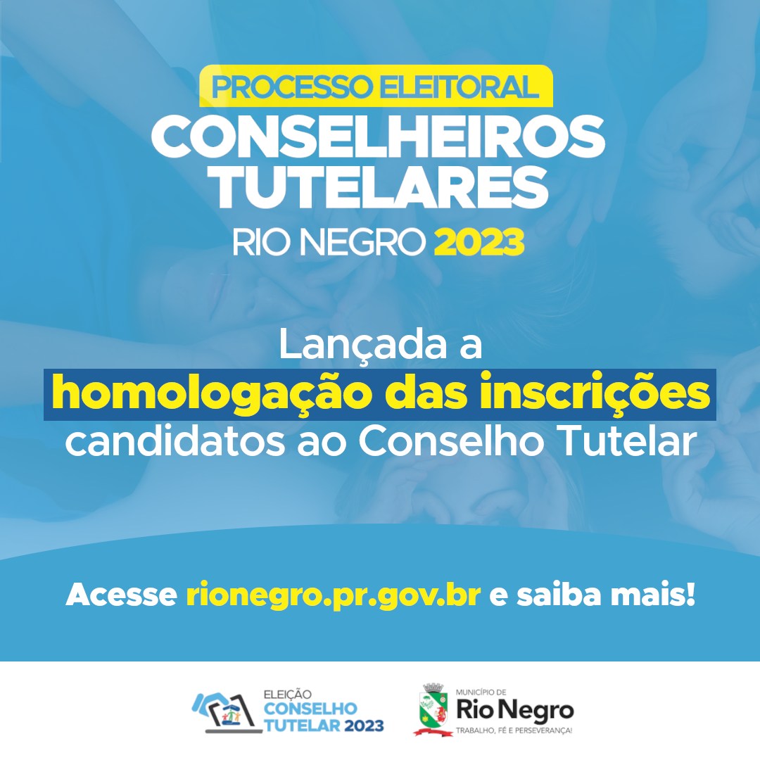 A Comissão Especial Eleitoral, nomeada pela Resolução nº 005/2023 do Conselho Municipal dos Direitos da Criança e do Adolescente (CMDCA) de Rio Negro, vem a público informar a homologação das inscrições da eleição do Conselho Tutelar de Rio Negro.
