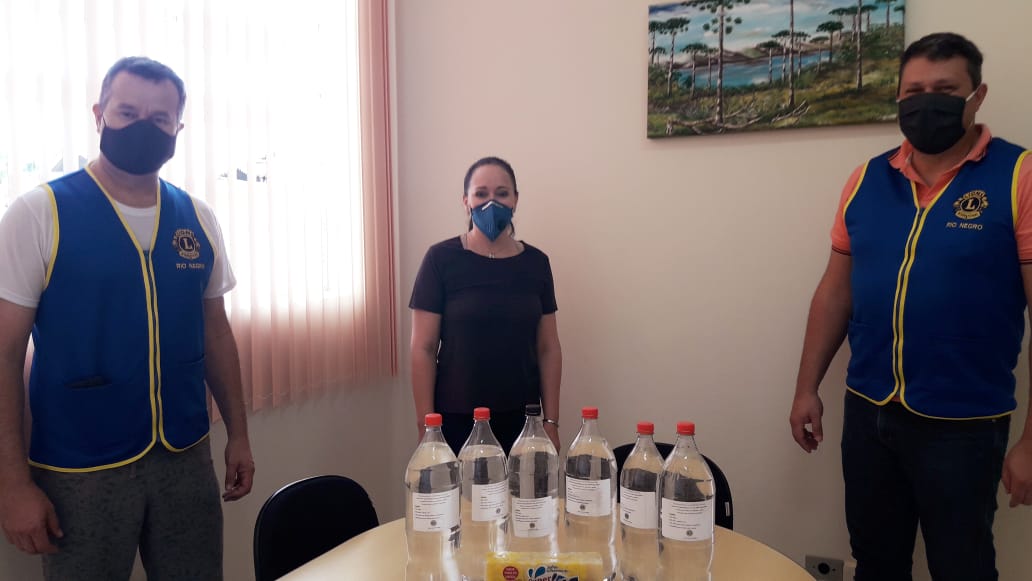 Nesta quarta-feira (29) o Lions Clube de Rio Negro promoveu a entrega de 800 litros de solução desinfetante e de 90 barras de sabão em barra para a Secretaria de Saúde do município, para serem aplicadas no combate ao coronavírus.
