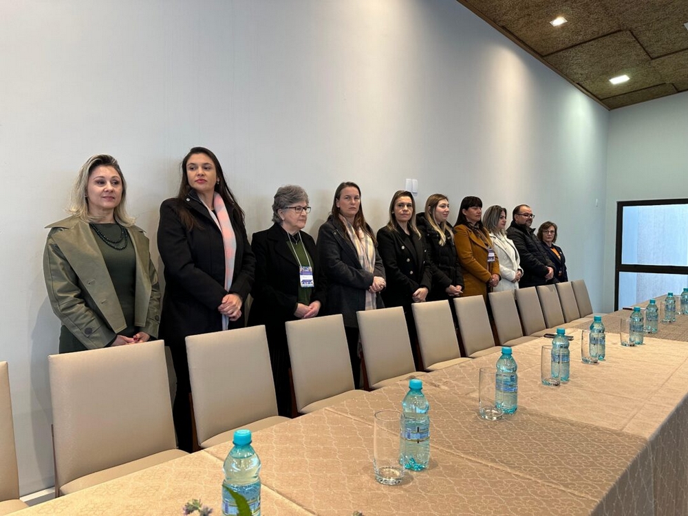 ausências do estado e exigimos ações. Que tenhamos uma conferência de construção e transformação”, afirmou, declarando aberta a 1ª Conferência Regional de Políticas Públicas para Mulheres do Planalto Norte Catarinense
