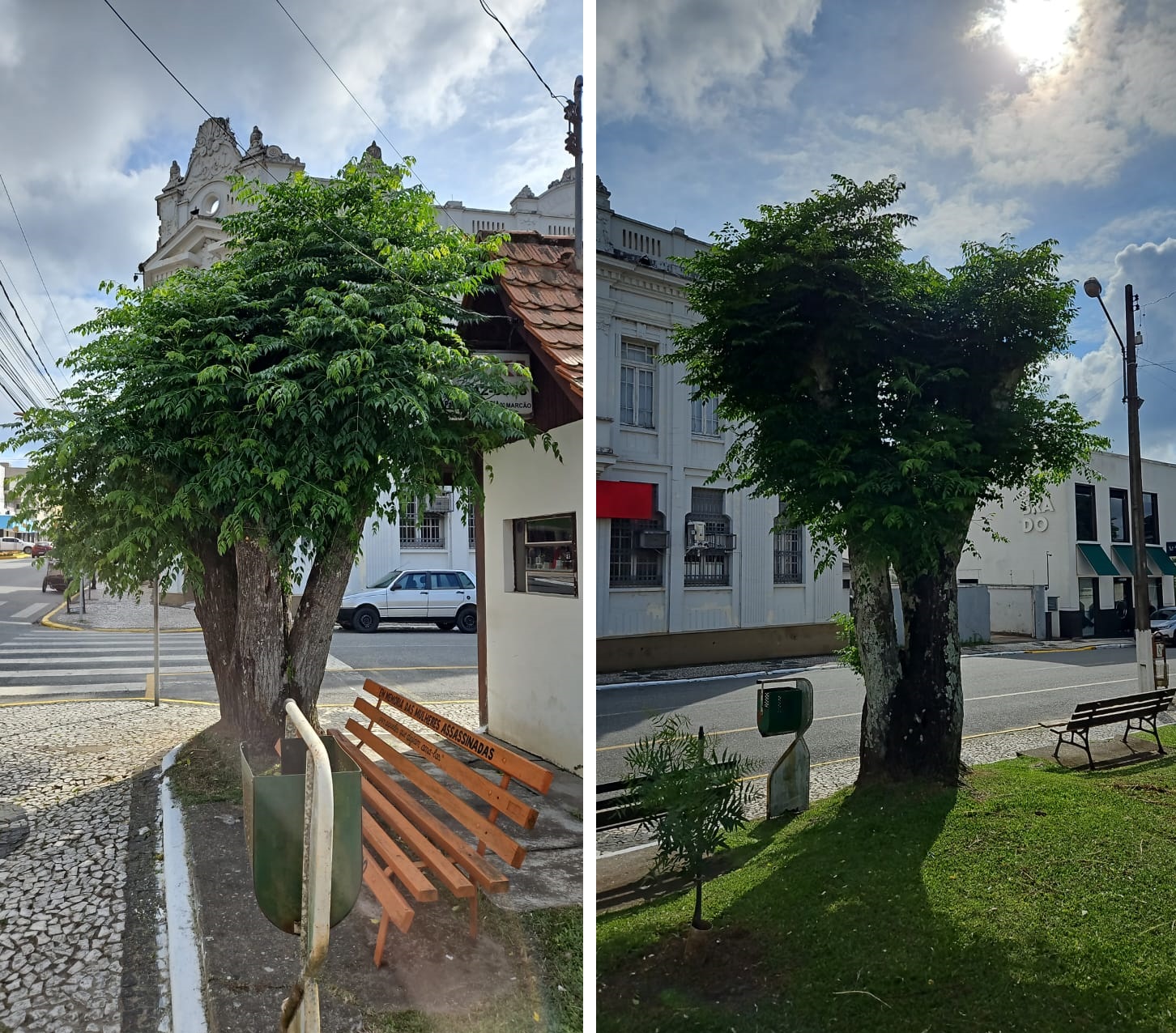 A poda possibilitou a continuidade do desenvolvimento das árvores por mais tempo e com fortalecimento. O resultado desse importante trabalho já está em evidência. As árvores estão brotando novamente com galhos novos e uma nova copa, sem o perigo de possuir galhos secos que podem quebrar e causar graves acidentes.