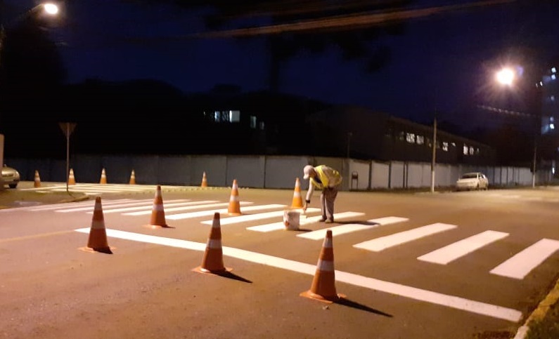 Houve o aperfeiçoamento das sinalizações horizontais e das faixas de pedestres visando a segurança dos munÃcipes.