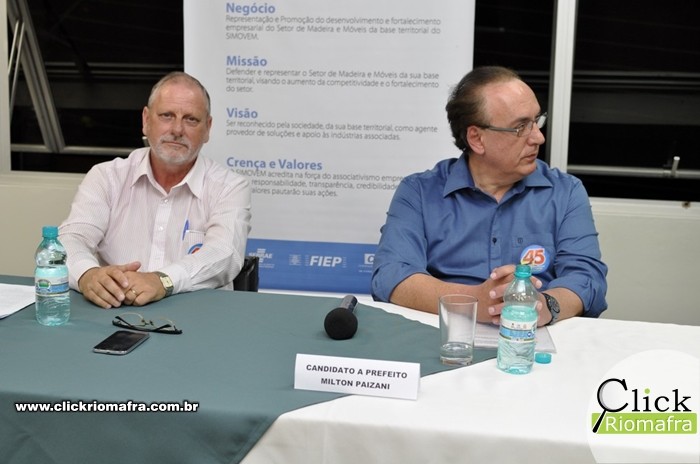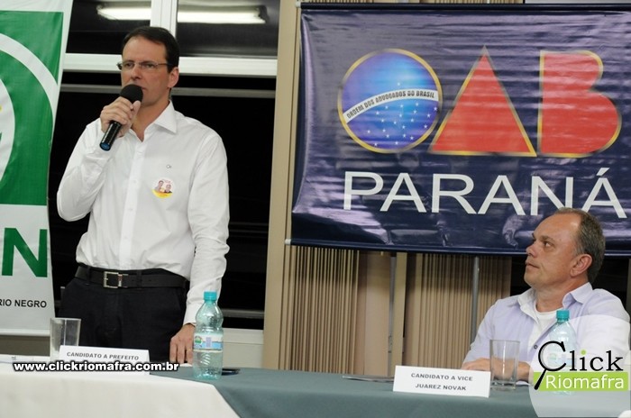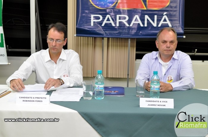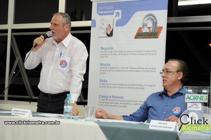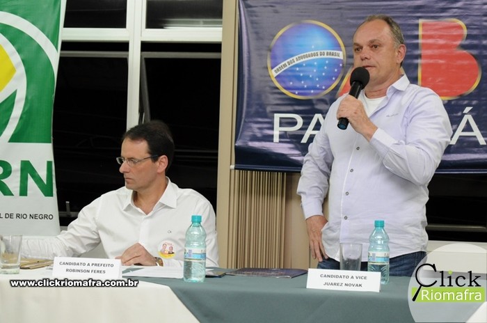 Na noite desta quarta-feira (28) os dois candidatos a prefeito de Rio Negro, Robinson Feres (PSB) e o atual prefeito Milton Paizani (PSDB), se enfrentarem em debate político no auditório do SESI. Com aproximadamente duas horas e meia de duração, o debate foi dividido em quatro blocos e teve temas indicados pelas entidades organizadoras do evento. Os candidatos também responderam a perguntas sorteadas que foram feitas por entidades locais e pelo público presente. O engenheiro Edson José Guenther foi o mediador do debate.