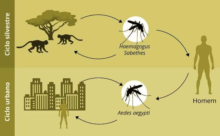 É uma doença infecciosa febril aguda, causada por um vírus transmitido por mosquitos vetores, e possui dois ciclos de transmissão: silvestre (quando há transmissão em área rural ou de floresta) e urbano.