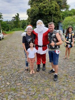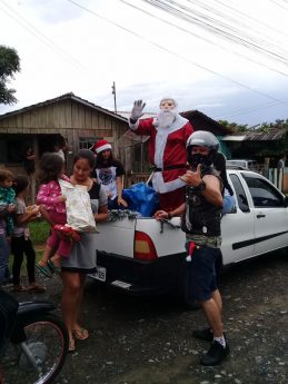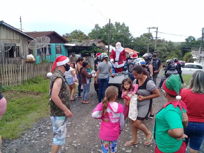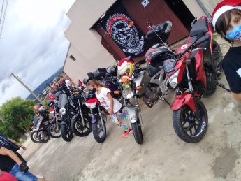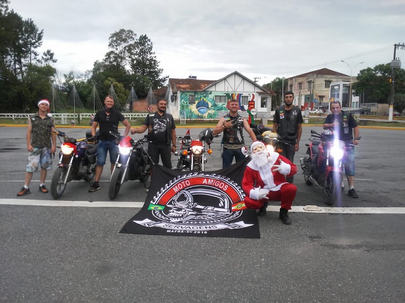 Os integrantes se uniram com amigos e fizeram a entrega de diversas cestas básicas para famÃlias carentes, além de brinquedos, doces e roupas para as crianças. O passeio por Riomafra contou com várias motos, carros e claro o Papai Noel que fez a alegria da criançada.