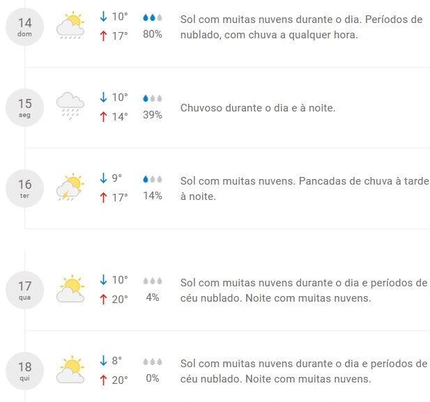 Segundo a previsão do Climatempo, a chuva deve continuar em Rio Negro e Mafra até a próxima terça-feira, mas com pouca intensidade, felizmente. O frio também deve continuar até a terça-feira.