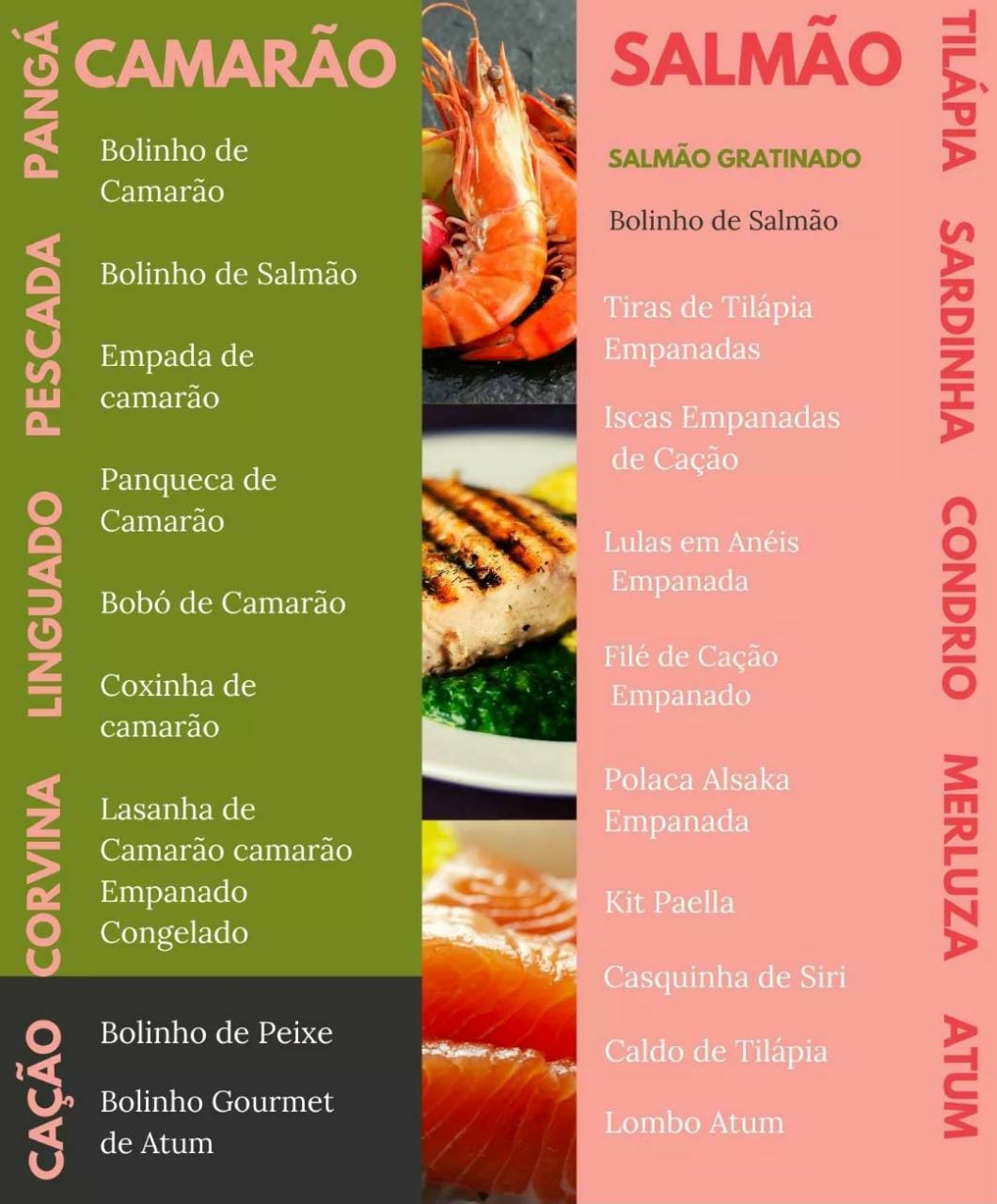 São várias opções, como filé de Congrio, Salmão gratinado, peixes empanados, filé de Linguado e Cação, Tainha recheada, entre tantas outras. Todos os produtos são embalados pela própria Nova Era Casa de Carnes, garantido assim qualidade e segurança aos clientes.