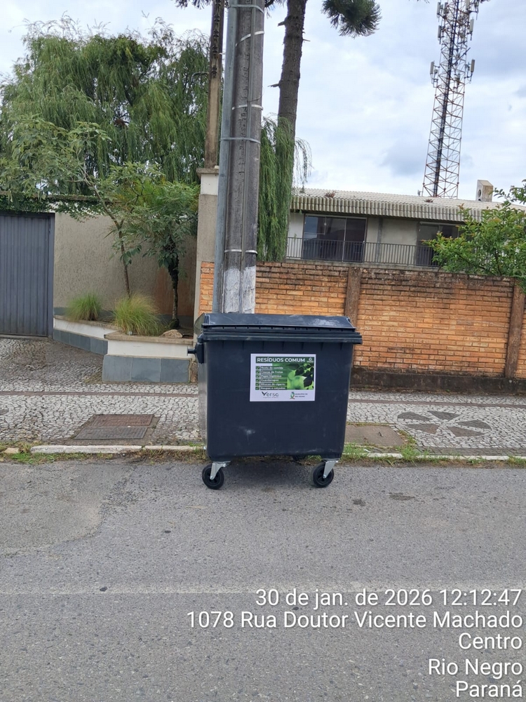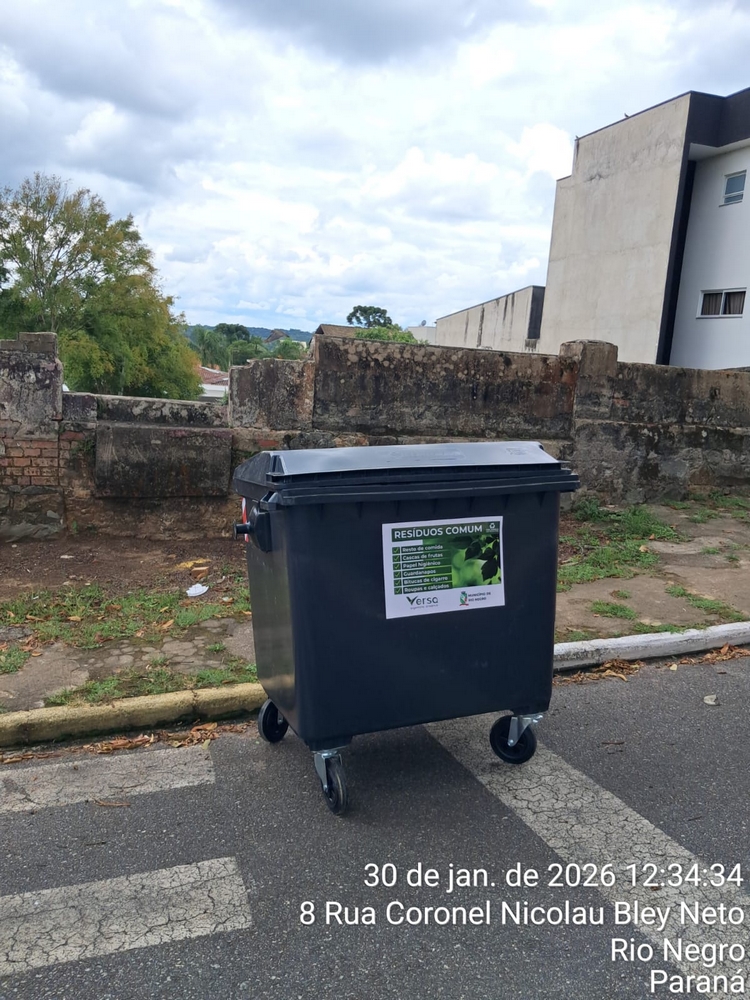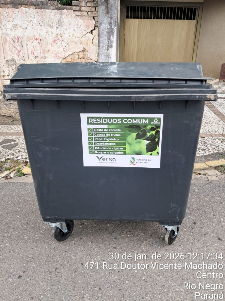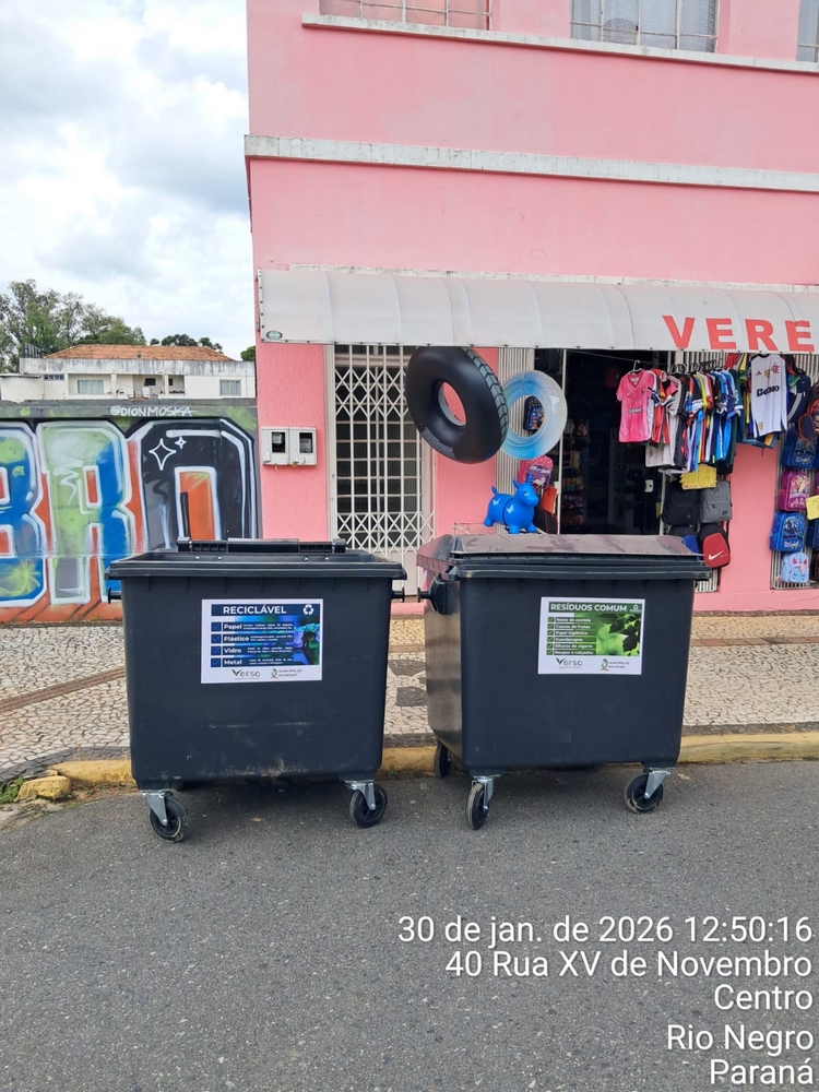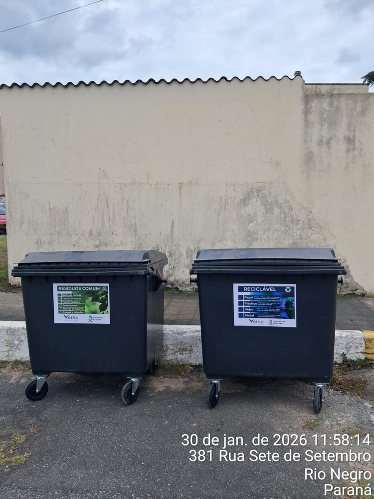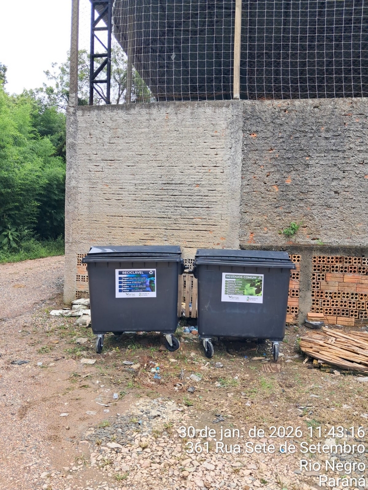 A empresa Versa Engenharia Ambiental, responsável pelo serviço de coleta de lixo no município de Rio Negro, instalou 30 contentores com capacidade de 1.000 litros cada em pontos estratégicos, como locais com grande presença de residências e comércio.