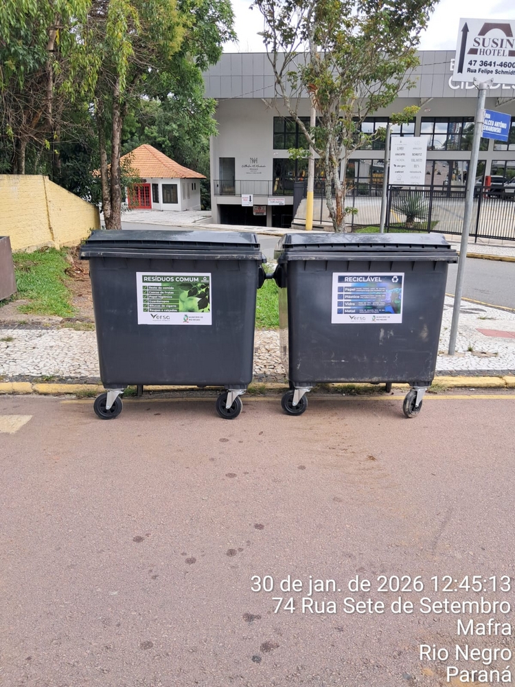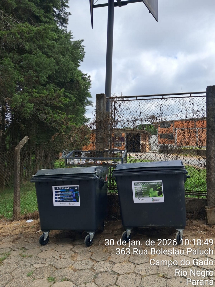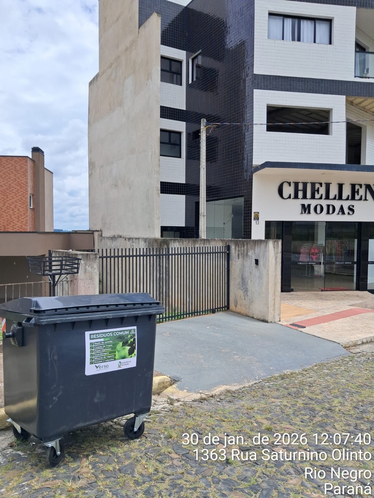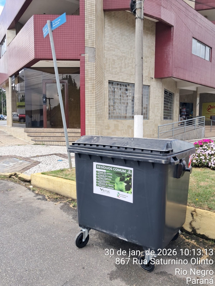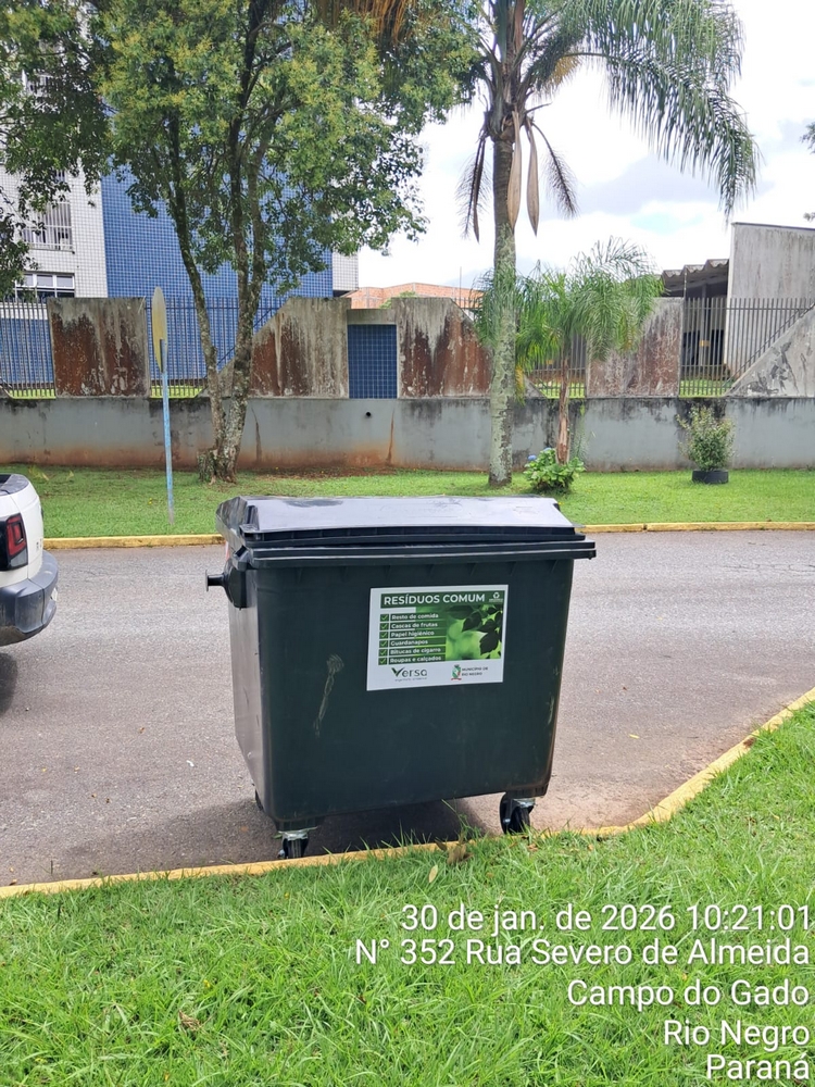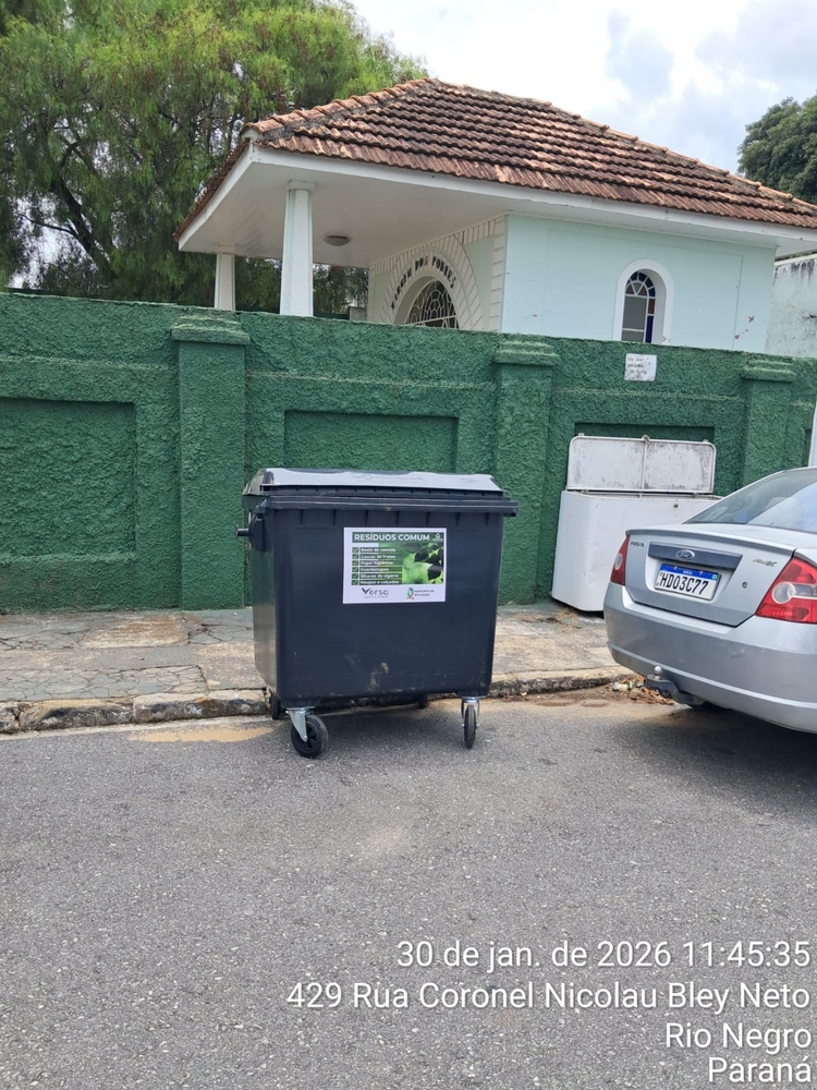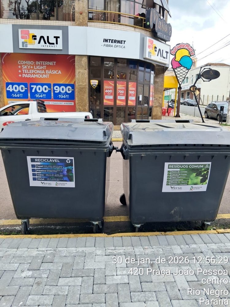A empresa Versa Engenharia Ambiental, responsável pelo serviço de coleta de lixo no município de Rio Negro, instalou 30 contentores com capacidade de 1.000 litros cada em pontos estratégicos, como locais com grande presença de residências e comércio.