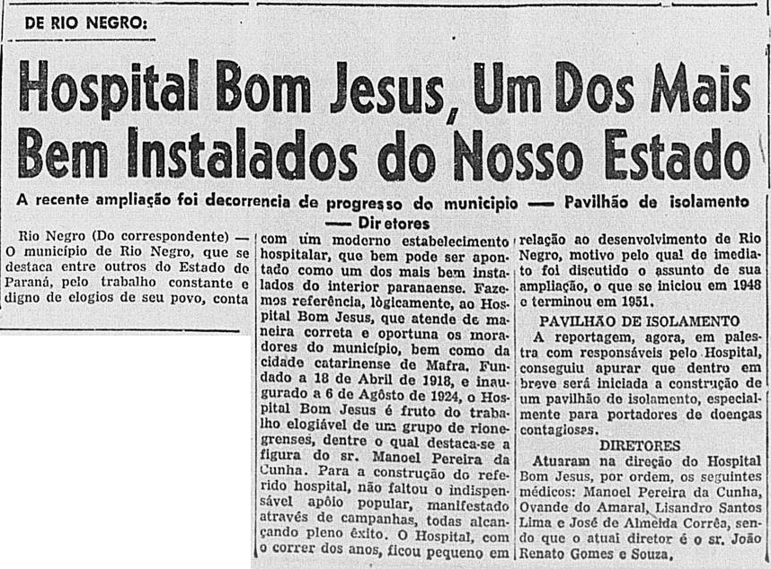 Apesar das dificuldades financeiras, o Hospital Bom Jesus já foi referência no Paraná com investimentos importantes em sua estrutura, como mostra a reportagem do jornal Diário do Paraná, no ano de 1955: