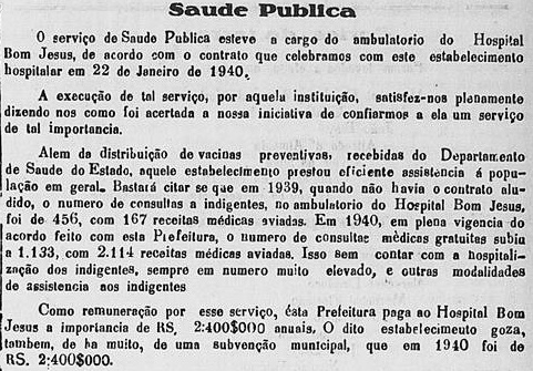 De fato a contrapartida ao cidadão é importante. Em 1941, por exemplo, a Prefeitura Municipal já realizava repasses ao hospital, mas com a contrapartida aos cidadãos, com o atendimento gratuito à população em Rio Negro. O registro a seguir é de uma publicação oficial da Prefeitura no jornal O Rio-negrense: