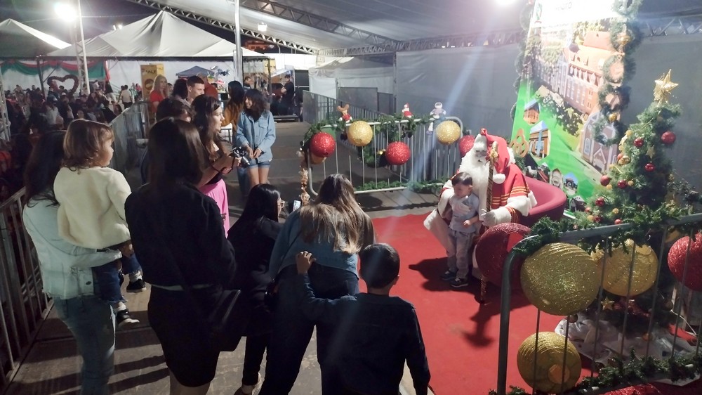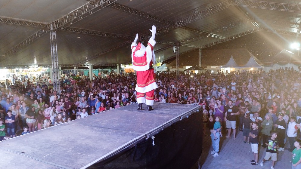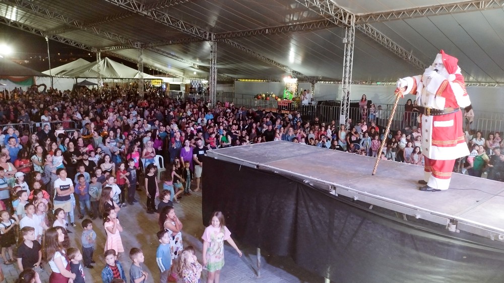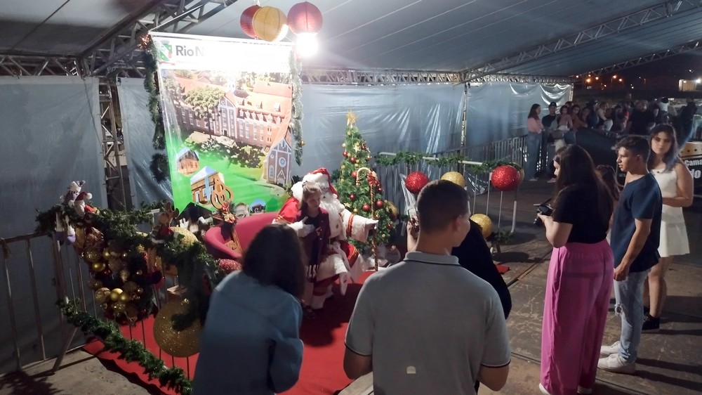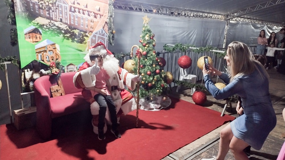 Após a presença em palco, o Papai Noel ficou à disposição de todos para fotos. A noite ainda teve a fabulosa apresentação da Sauer Produções com o artista riomafrense Felipe Sauer e sua assistente, que também interagiram com o público com grandes mágicas em clima natalino.
