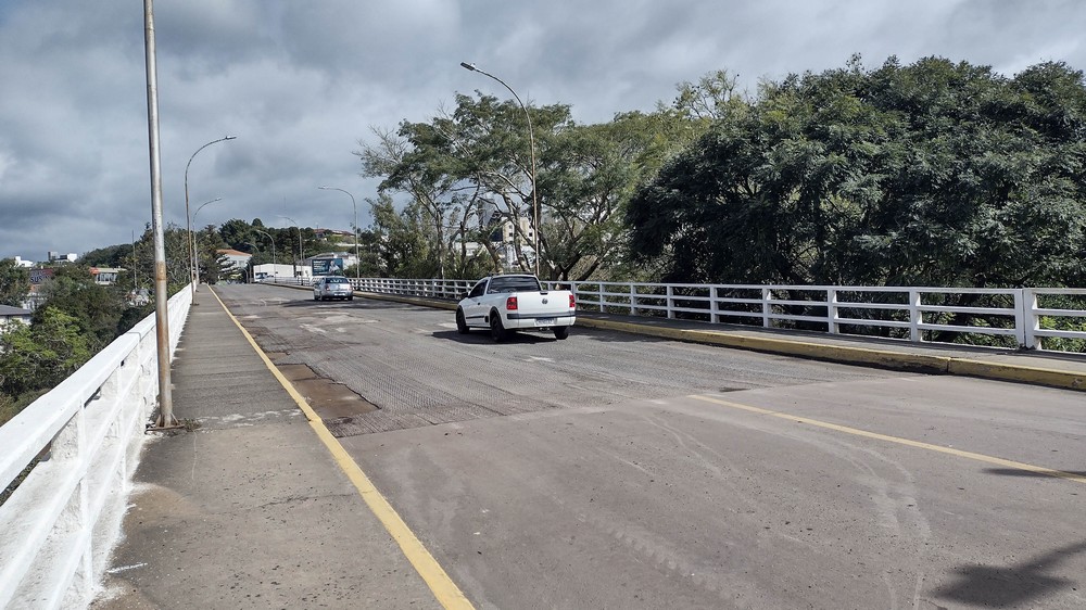 A Ponte Interestadual Coronel Rodrigo Ajace (popularmente chamada de Ponte Nova) está passando por obras preventivas. A primeira etapa foi concluÃda na semana passada, quando foi realizada a fresagem, que consiste na retirada das camadas do antigo asfalto. Agora será realizado o recapeamento com a colocação do novo asfalto.