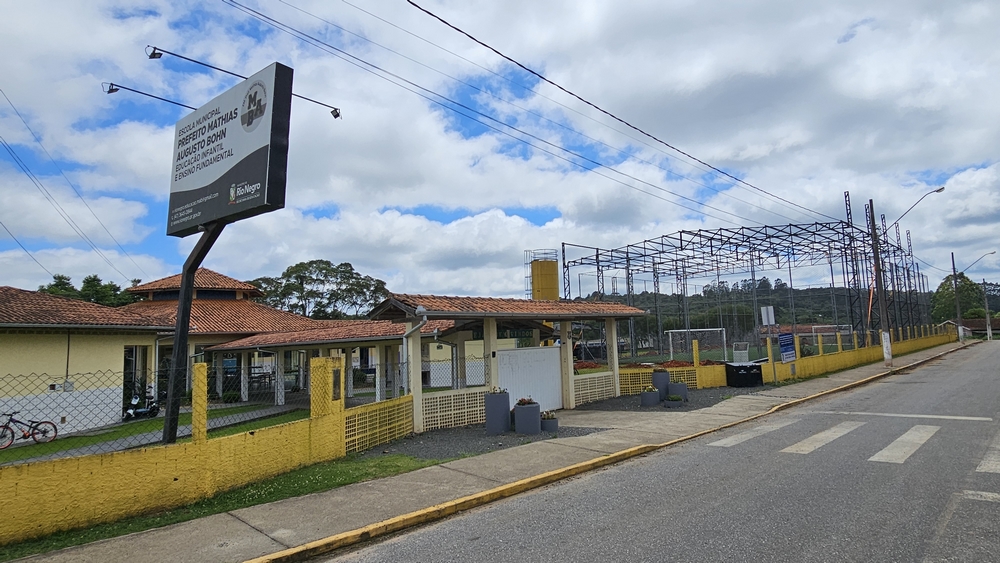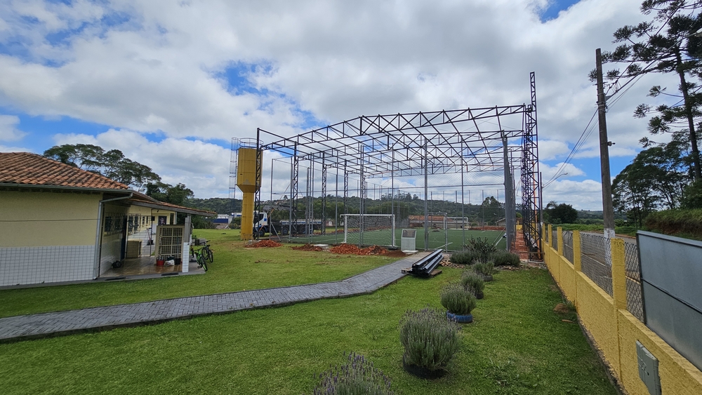 A Prefeitura de Rio Negro está investindo na colocação de uma estrutura metálica e posterior cobertura da quadra esportiva da Escola Municipal Mathias Augusto Bohn, algo aguardado há tempos pela comunidade escolar.