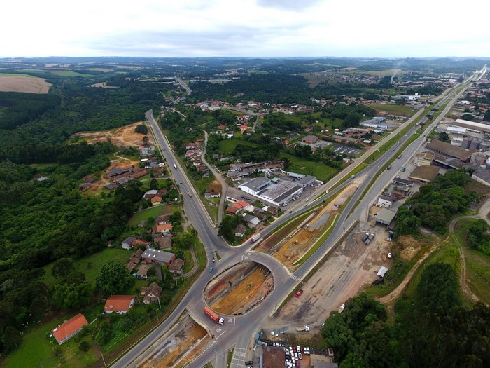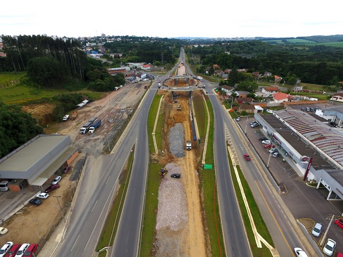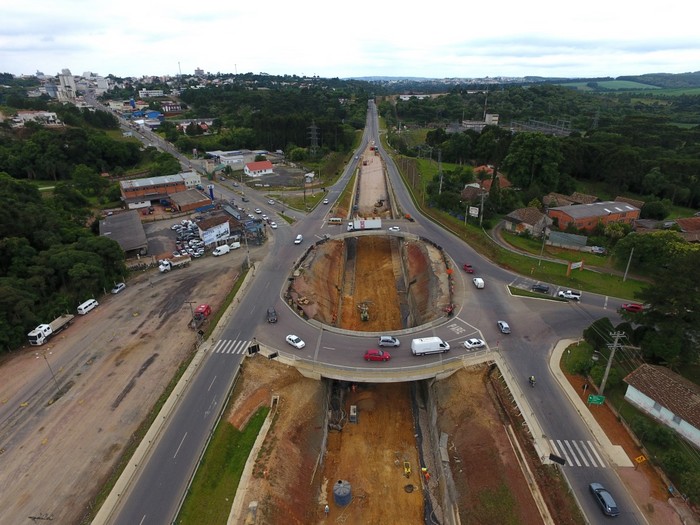 A Autopista Planalto Sul realiza obras de execução de viaduto em desnÃvel no entroncamento da BR 116 com a BR 280. A partir desta quarta-feira (18) terão inÃcio os trabalhos de reestruturação e pavimentação das alças que encaixam os viadutos.