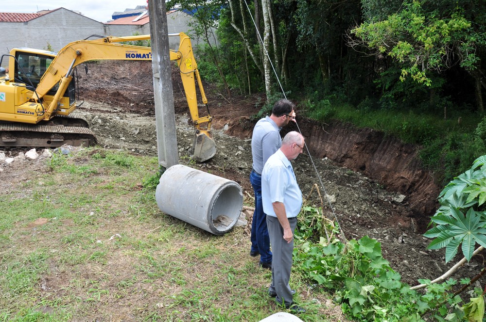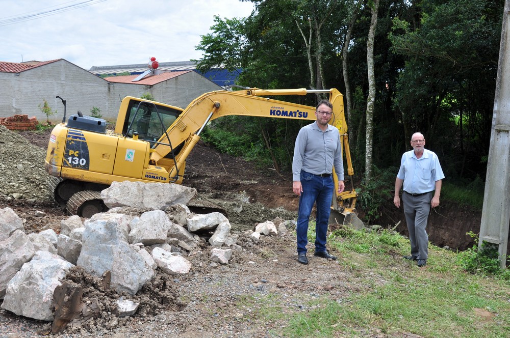 O prefeito James Karson Valério e o vice-prefeito Alessandro von Linsingen estiveram na manhã de hoje no local para acompanhar o desenvolvimento das obras que irão gerar melhorias na qualidade de vida dos moradores.