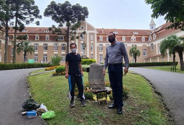 Oração de São Francisco de Assis esculpida em pedra está sendo restaurada em Rio Negro