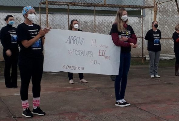 Enfermeiros realizam protestos por piso salarial e limite de carga horária em Rio Negro
