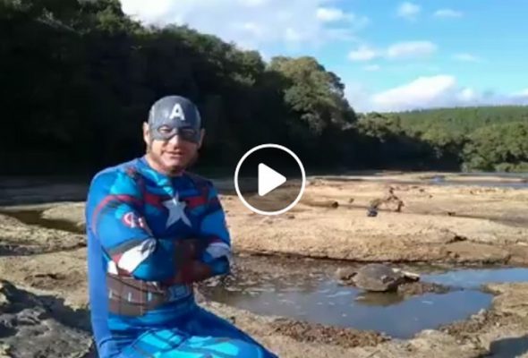 “Capitão América” visita o rio Negro e alerta sobre o uso racional da água