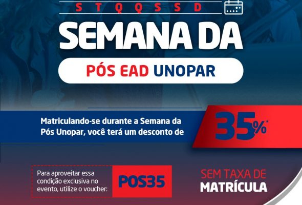 Semana da Pós Ead Unopar; garanta 35% de desconto