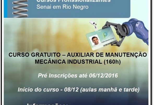 SESI de Rio Negro oferece curso gratuito de auxiliar de manutenção mecânica industrial