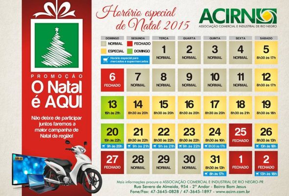 ACI e CDL divulgam o horário especial de Natal 2015 do comércio de Riomafra