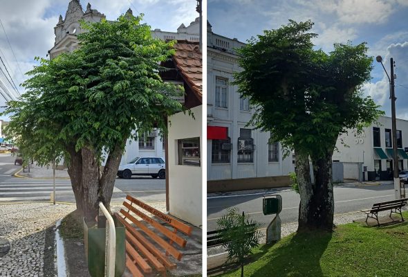 Manejo de brotação de árvores na Praça dos Correios já possui bons resultados
