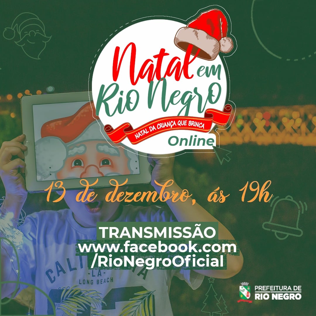 Neste domingo, 13 de dezembro, o Papai Noel estará em Rio Negro para encontrar todas as crianças. Neste ano o encontro será virtual, mas com a mesma emoção de sempre. Acompanhe pela página às 19h: www.facebook.com/rionegrooficial