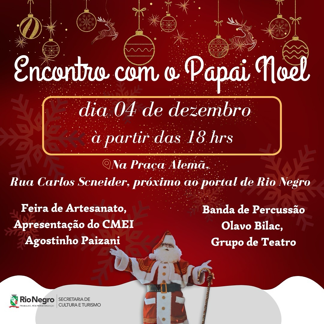 Nesta quarta-feira, dia 04 de dezembro, a partir das 18h, a Praça Alemã (popular Praça da Afubra) será palco para mais um evento natalino de Rio Negro.