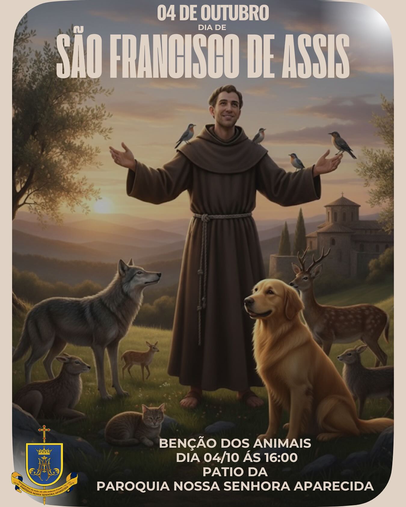 A Paróquia Nossa Senhora Aparecida de Rio Negro fará neste sábado uma ação de bênção dos animais, quando a Igreja Católica celebra o Dia de São Francisco de Assis, considerado o padroeiro dos animais e da natureza. A bênção ocorrerá no pátio da paróquia a partir das 16h. No local haverá a arrecadação de ração.