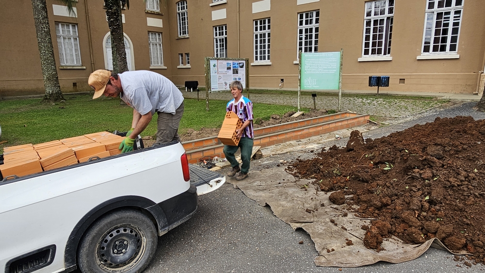 As mudas utilizadas nos canteiros foram cultivadas no Viveiro Florestal AnÃzio de Andrade do municÃpio de Rio Negro. A equipe do viveiro também atuou com dedicação na construção e na preparação dos canteiros.