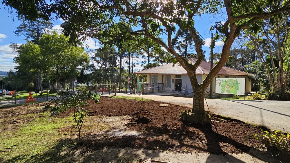 Como parte do processo de revitalização e valorização paisagÃstica do espaço, também está sendo executada a requalificação da área frontal do prédio principal do parque ecoturÃstico. No local onde antes havia arbustos secos e descaracterizados, está sendo construÃdo um novo canteiro com tijolos à vista, que receberá o plantio de flores. A iniciativa busca embelezar ainda mais o espaço e valorizar a estética daquela que é considerada por muitos como a prefeitura mais bonita do Brasil.
