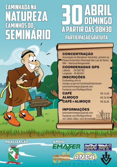 No próximo dia 30 de abril, domingo, acontece em Rio Negro a Caminhada na Natureza “Caminhos do Seminário”. Uma caminhada de 11,5 km que contempla as paisagens do meio rural rionegrense.