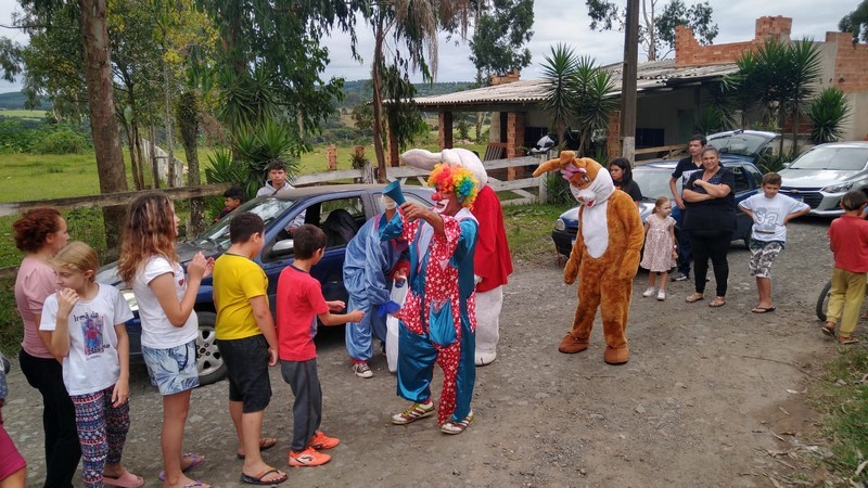 Os voluntários do projeto visitaram diversas comunidades de Mafra e Rio Negro para distribuir kits de cestinhas contendo chocolates e doces para as crianças, tendo a presença especial do Coelhinho da Páscoa, coelhinha e palhaços, seguidos pelo micro-ônibus gentilmente cedido pela empresa Transbasso com as personagens que compõem o projeto.