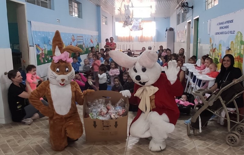 Ao todo 2.112 kits de Páscoa e 22 cestas básicas foram entregues pela campanha em 21 comunidades. A campanha atendeu ainda um total de 969 crianças de diferentes creches e entidades de Riomafra, totalizando 3.081 atendimentos na campanha de 2024.