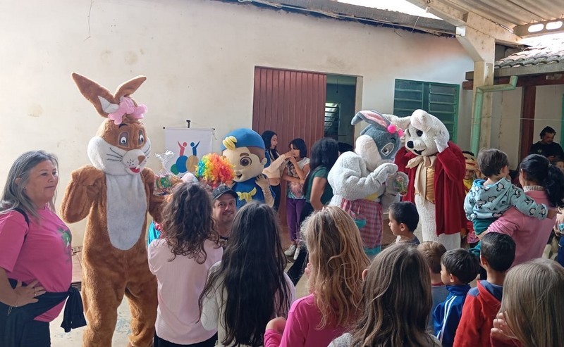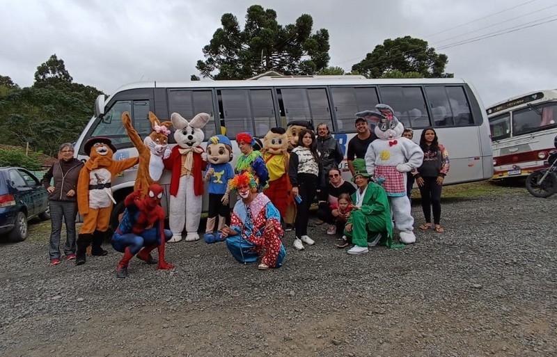 Os voluntários do projeto visitaram diversas comunidades de Mafra e Rio Negro para distribuir kits de cestinhas contendo chocolates e doces para as crianças, tendo a presença especial do Coelhinho da Páscoa, coelhinha e palhaços, seguidos pelo micro-ônibus gentilmente cedido pela empresa Transbasso com as personagens que compõem o projeto.