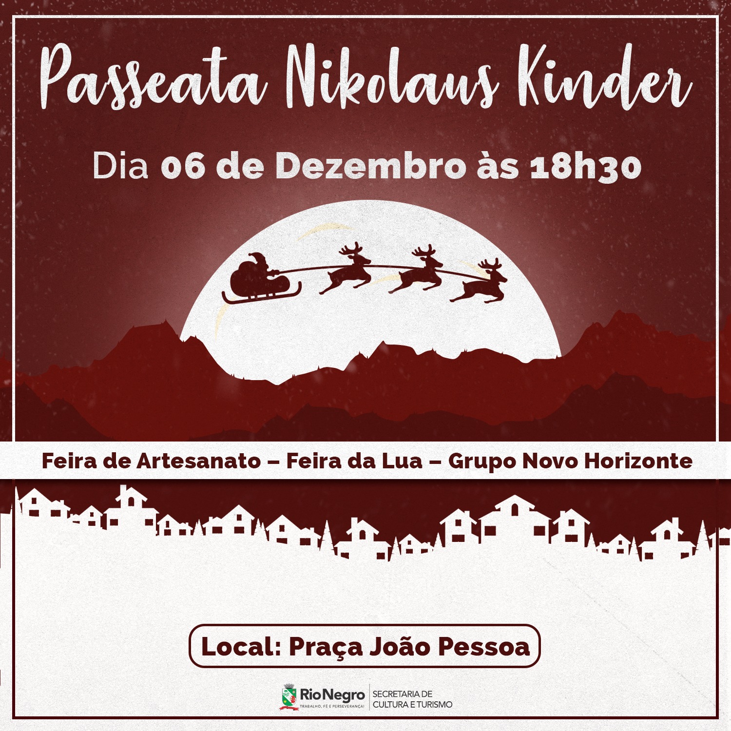 A Passeata Nikolaus Kinder será realizada nesta quarta-feira, dia 06 de dezembro, às 18h30 na Praça João Pessoa.