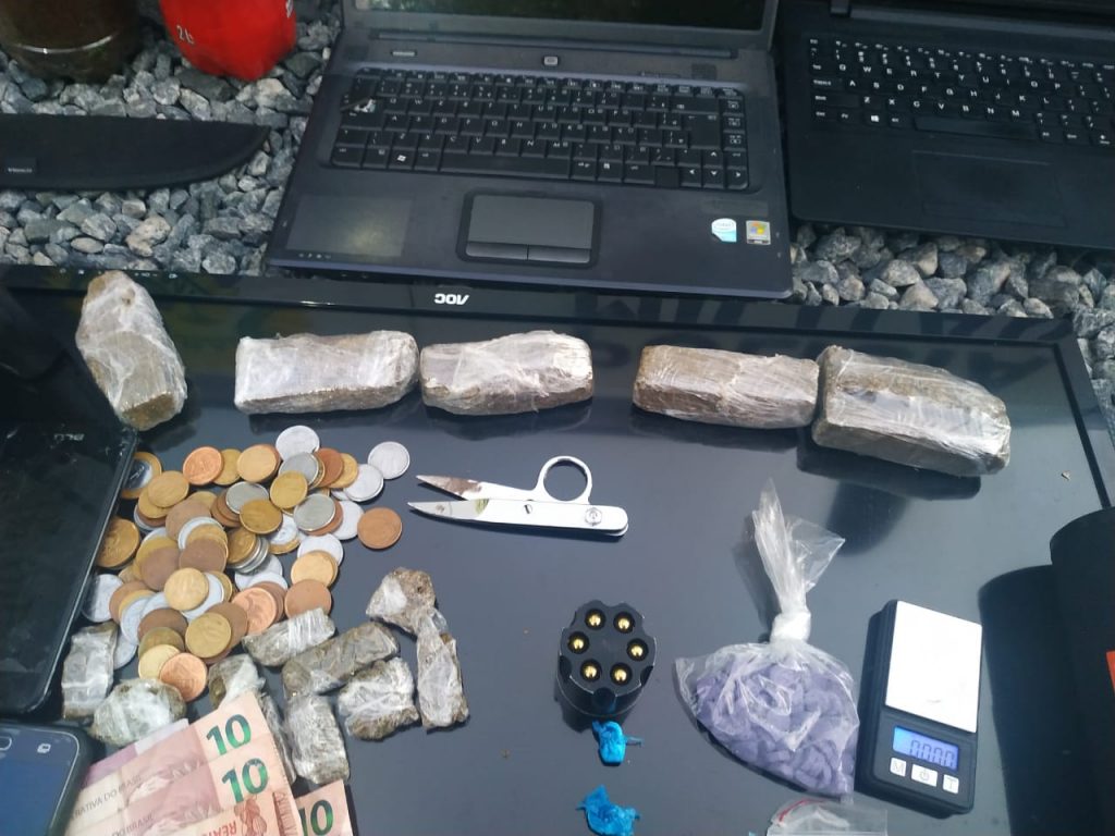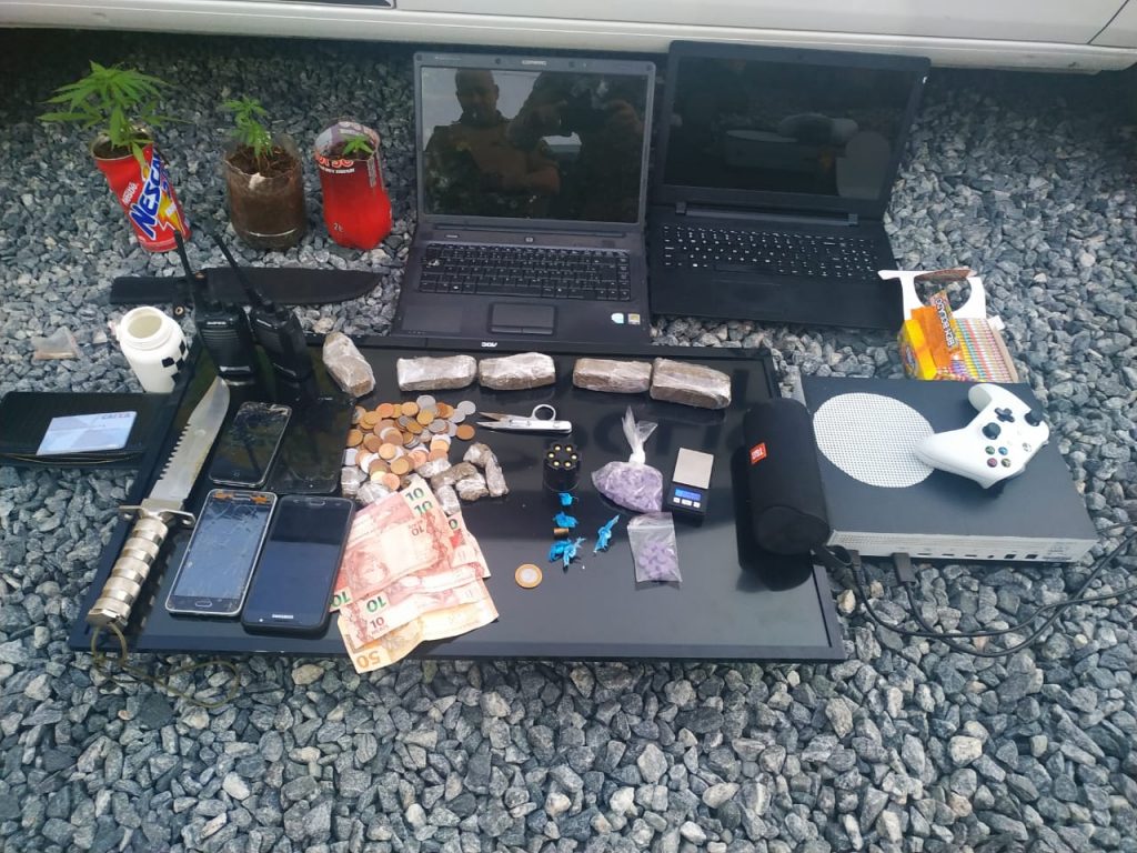 Policiais Militares da Companhia de Polícia de Rio Negro efetuaram a apreensão de diversos entorpecentes e objetos nessa tarde. Em patrulhamento, a equipe abordou um usuário de drogas, que indicou onde teria adquirido a droga. No local apontado, efetuaram a apreensão de maconha, crack e droga sintética. Ainda foi aprendido um menor e diversos objetos que se acredita serem produtos de furtos, trocados por droga no local.