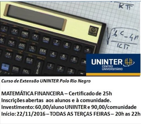O polo de Rio Negro do Centro Universitário Internacional (Uninter) vem se destacando como “polo proativo”. Ao longo de 2016 proporcionou aos seus alunos e a comunidade cursos de extensão, como palestras interativas, cursos, oficinas e fóruns, tanto a distância, como presenciais.