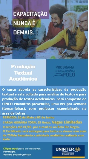O Uninter polo Rio Negro investe em profissionais qualificados apostando na educação como elemento transformador da nossa comunidade.