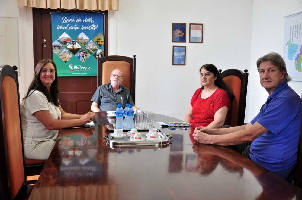 Nesta sexta-feira o prefeito esteve reunido com a secretária municipal de educação, Vera Pfeffer Schelbauer, com a coordenadora do Polo de Apoio Presencial Professor Francisco de Oliveira, Mônica Alessandra Belém, e com Gilson Marcos Nogacz, técnico em informática da secretaria de educação. A reunião ocorreu para anunciar os novos cursos previstos para ocorrer neste ano no polo educacional, situado junto à Prefeitura.