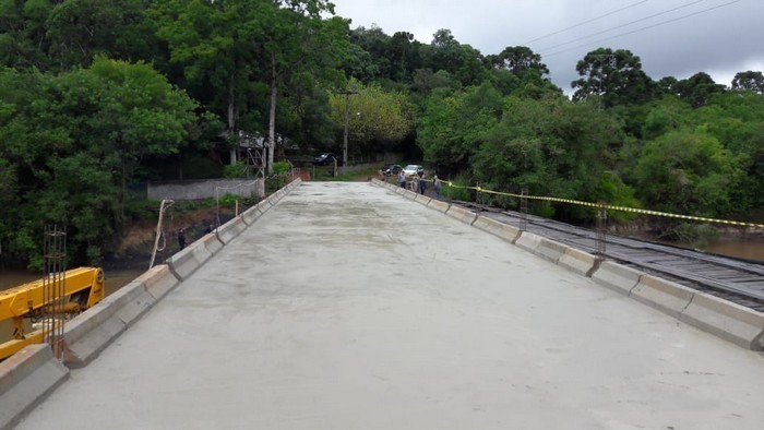 A ponte da Fazendinha na divisa entre Rio Negro e a Lapa já recebeu a última camada de concreto, restando apenas às obras de acesso e das cabeceiras para ser liberada para a população.