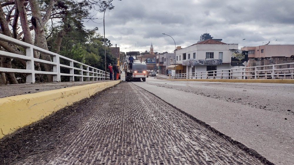 A Ponte Interestadual Coronel Rodrigo Ajace (Ponte Nova) está passando por obras preventivas. A primeira etapa foi concluÃda na quinta-feira, quando foi realizada a fresagem, que consiste na retirada das camadas do antigo asfalto.