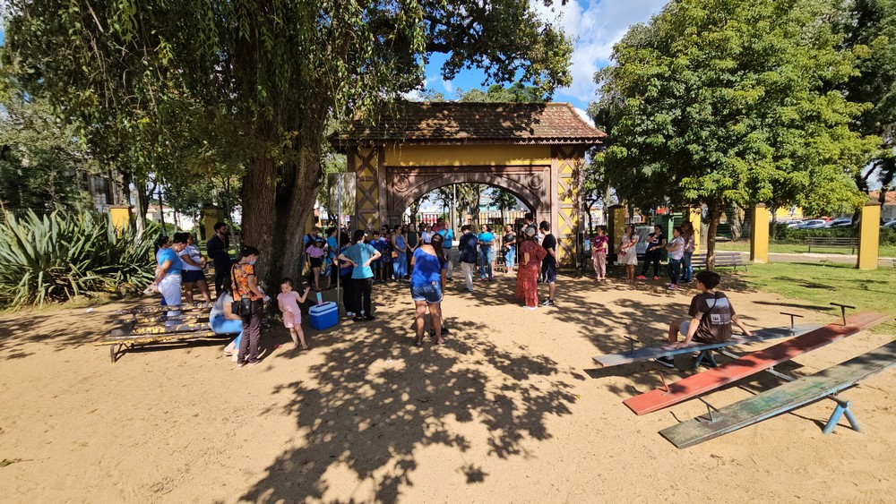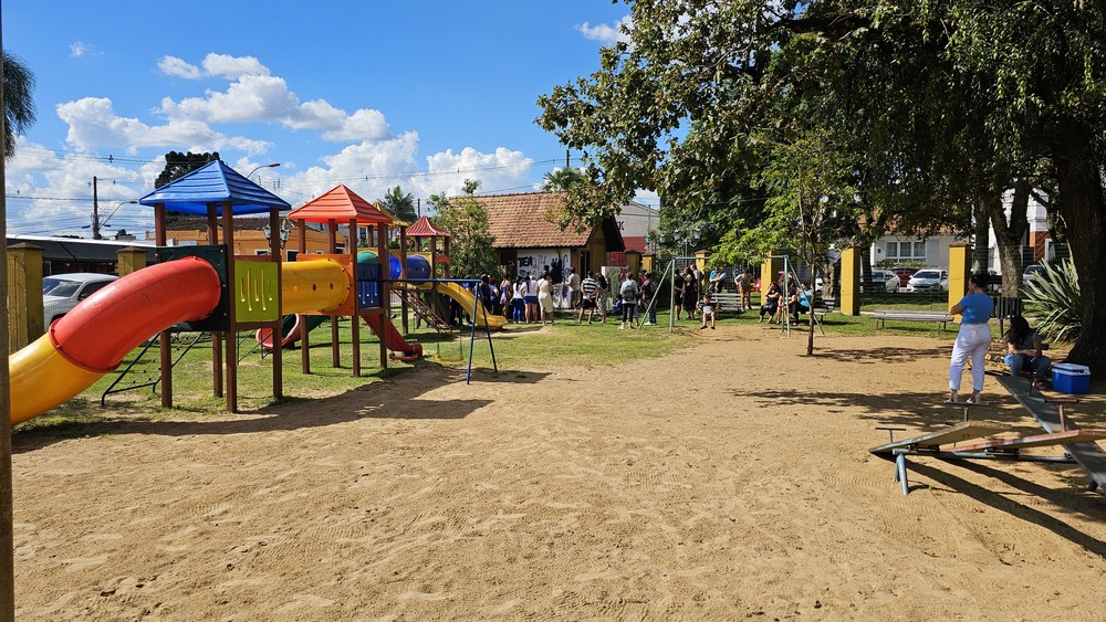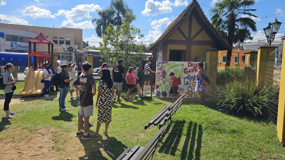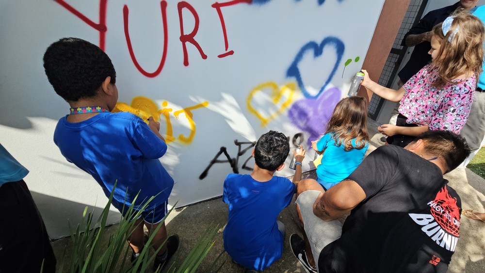 A ação conjunta envolveu as secretarias de saúde, educação e cultura. Com iniciativa do Espaço TEA de Rio Negro, foram realizadas pinturas com a arte do grafite em espaços do parque infantil da praça.